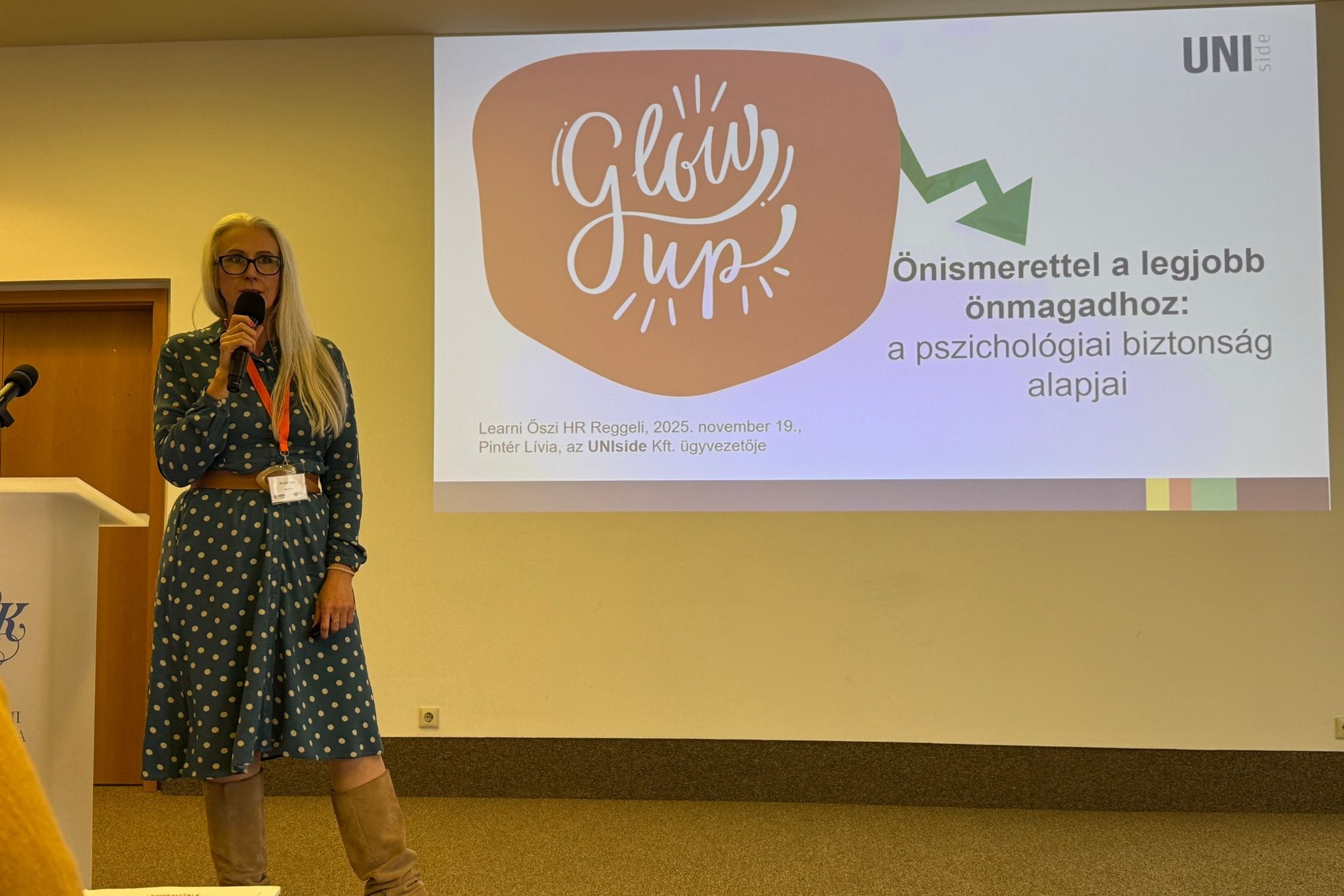 Az önismeret és a pszichológiai biztonság kapcsolatáról szólva a Learni őszi HReggelijén tartott előadásunk fő fókuszában az állt, hogyan tudjuk önismerettel elérni a legjobb önmagunkat, és ebben milyen szerepe van a Glow up! programunknak. A konferencia központi témáját támogatva a többi előadáshoz hasonlóan arra mutattunk rá: a munkahelyi jóllét több annál, mint hogy kényelmes környezetet teremtünk a dolgozóknak. Egyre több munkáltató ébred rá arra, hogy önismerettel, pszichológiai biztonsággal sokszor valóban többet érhetnek el.