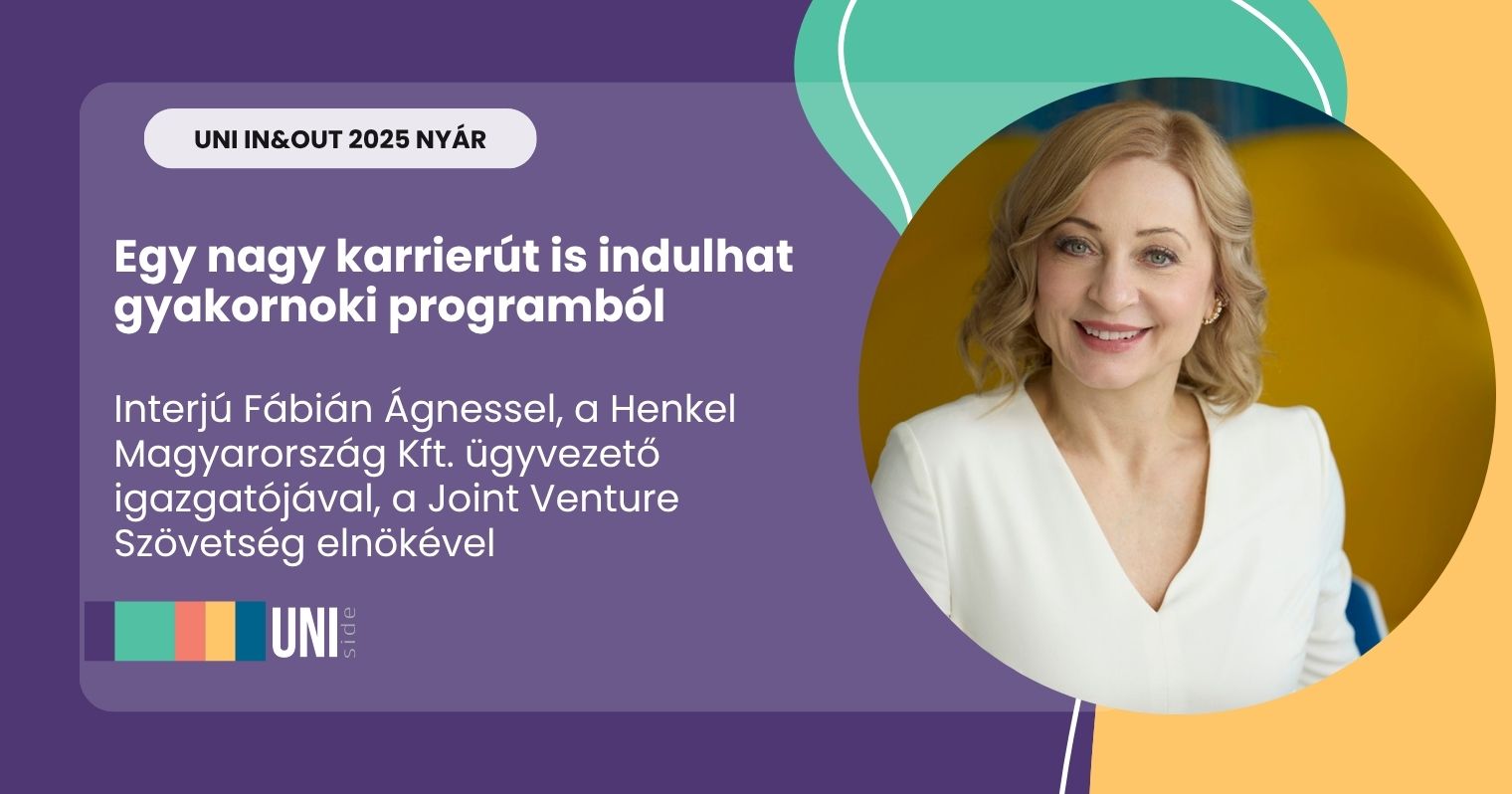 Boldog vagyok, mert mindenki, aki gyakornokként csatlakozik hozzánk, sokszor a mesterképzése alatt is, és ha van nyitott pozíció, akkor tovább is nálunk marad. Sok időt töltenek el nálunk, a csapat részei, teljes jogú munkatársak” – mondja Fábián Ágnes, a Henkel Magyarország Kft. ügyvezető igazgatója, a Joint Venture Szövetség elnöke az UNIside-nak adott interjújában.
