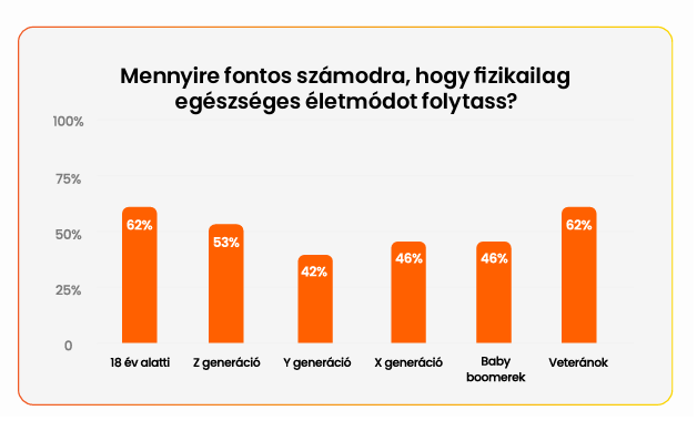 A kutatás egyik meglepő eredménye, hogy a fiatalok számára a fizikailag egészséges életmód és a betegségek elkerülése csaknem ugyanolyan fontos, mint az idősebb generációknál. A Z-sek 53 szűzaléka tartja kiemelten jelentősnek a tudatos, egészséges életvitelt, amit a közösségi média hatása tovább erősít. A cégek számára ez azt jelenti, hogy a jólléti programok, az egészségtámogató étkezési lehetőségek, a munkahelyi sport vagy akár a mentális egészségre fókuszáló kezdeményezések már nem „extra”, hanem fontos versenyelőny.